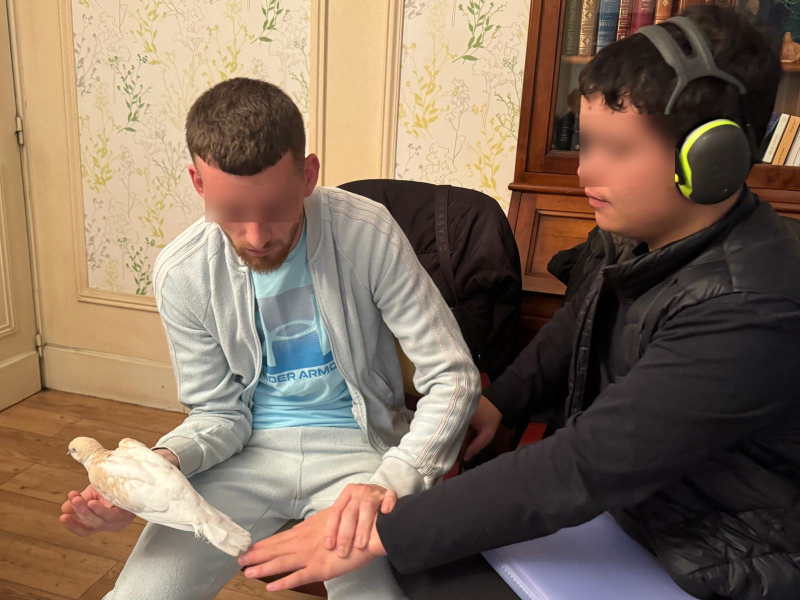 L’après-midi, la séance de zoothérapie s’est déroulée dans une ambiance chaleureuse. Les jeunes de l’IME nous ont rejoints, accompagnés par Camille, leur éducateur. Cette rencontre intergénérationnelle a apporté dynamisme, échanges et sourires au sein du groupe.