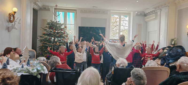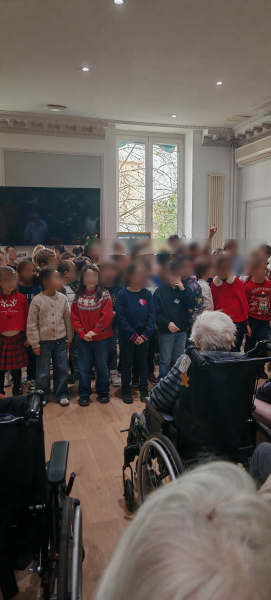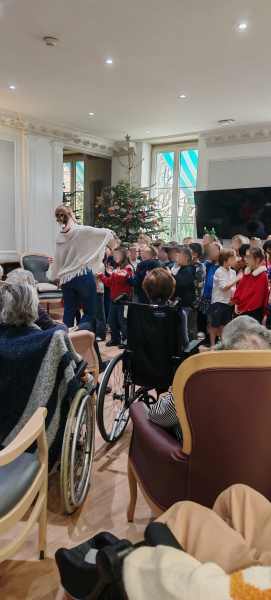 Les résidents ont eu la joie d’accueillir les élèves de CE1 et CM1 de l’école La Ronce, venus chanter avec gaieté de beaux chants de Noël.